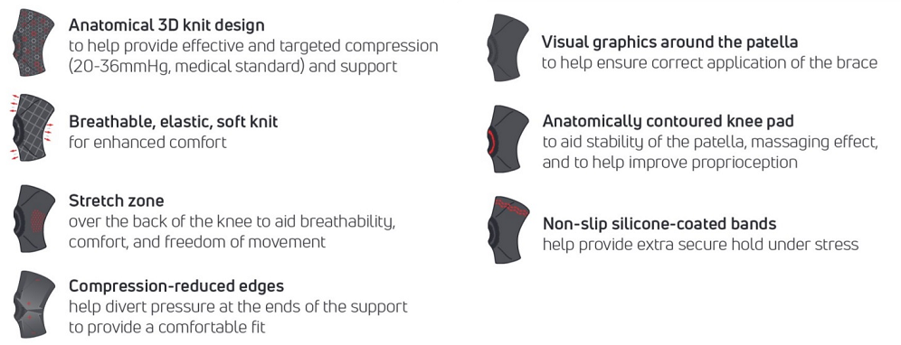 Ideal as a post-operative support after patella operations.